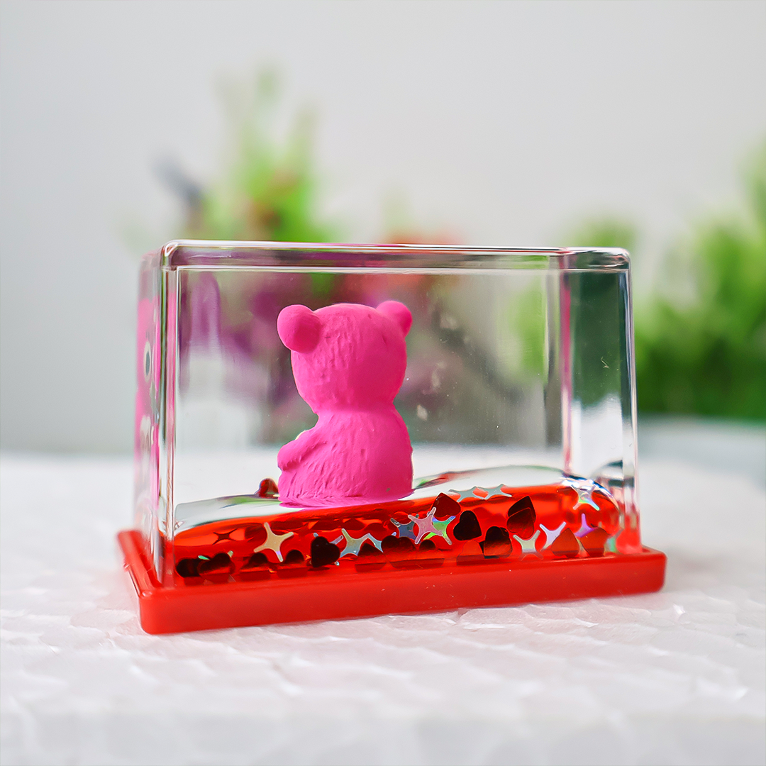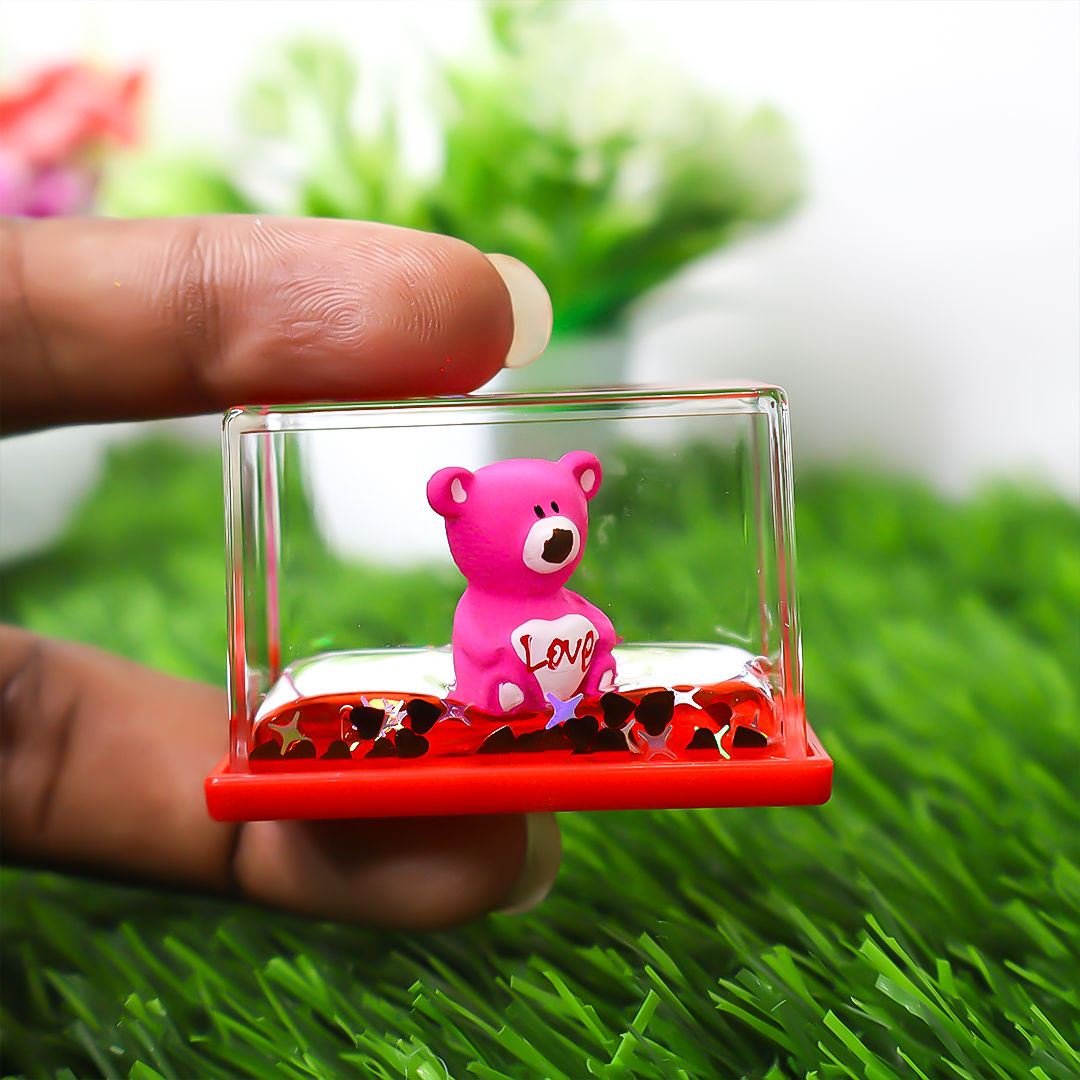 A meticulously crafted miniature teddy that glides on a liquid surface, producing a realistic wave effect. Its small dimensions allow for convenient placement in diverse environments without occupying excessive space. This piece provides a momentary respite from work-related stress, contributing to enhanced concentration and productivity.