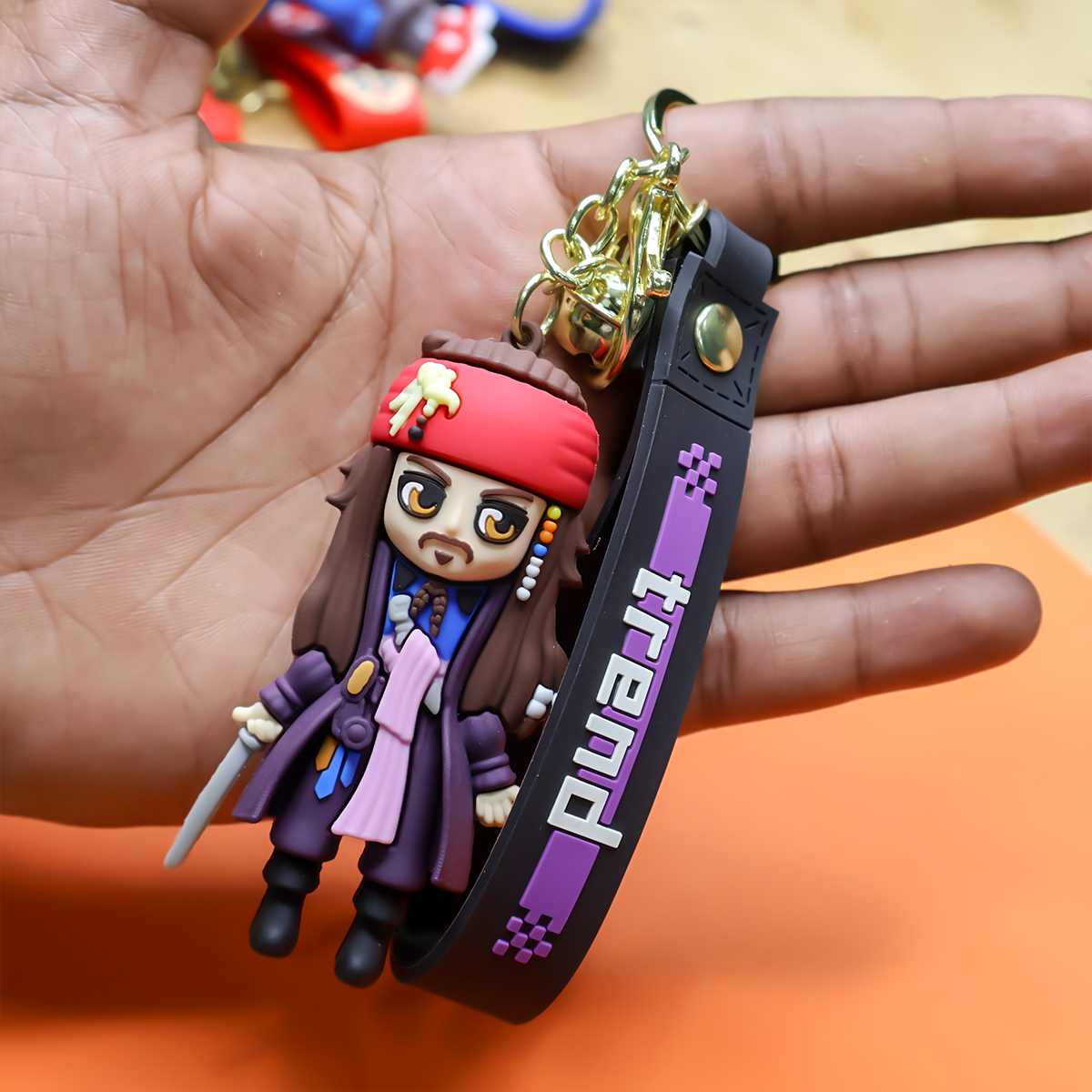 Cute cartoon design keychain/key ring made of rubber and silicone strap with metal loop, durable and quality product with excellent finish.Suitable for multi-purpose use, can be used as bag charm, car keychain, bike keychain, and office key rings or for any other purposes.