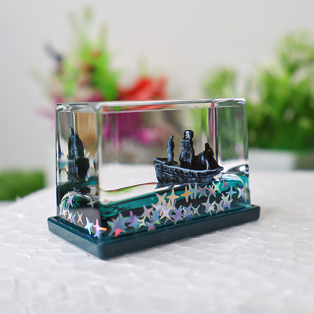 A meticulously crafted miniature boat that glides on a liquid surface, producing a realistic wave effect.Its small dimensions allow for convenient placement in diverse environments without occupying excessive space. This piece provides a momentary respite from work-related stress, contributing to enhanced concentration and productivity.
