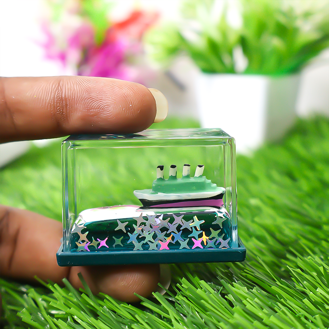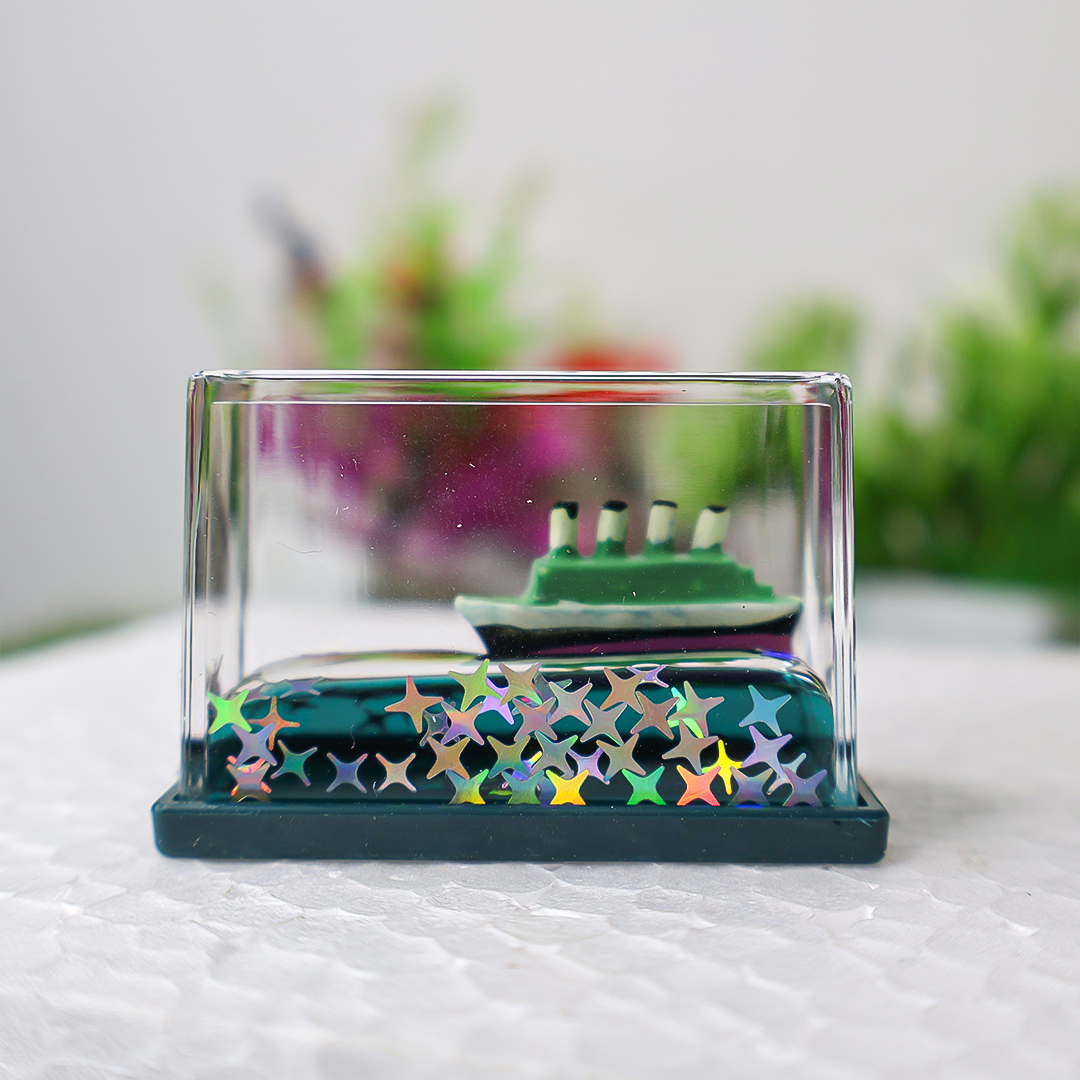 A meticulously crafted miniature boat that glides on a liquid surface, producing a realistic wave effect.Its small dimensions allow for convenient placement in diverse environments without occupying excessive space. This piece provides a momentary respite from work-related stress, contributing to enhanced concentration and productivity.